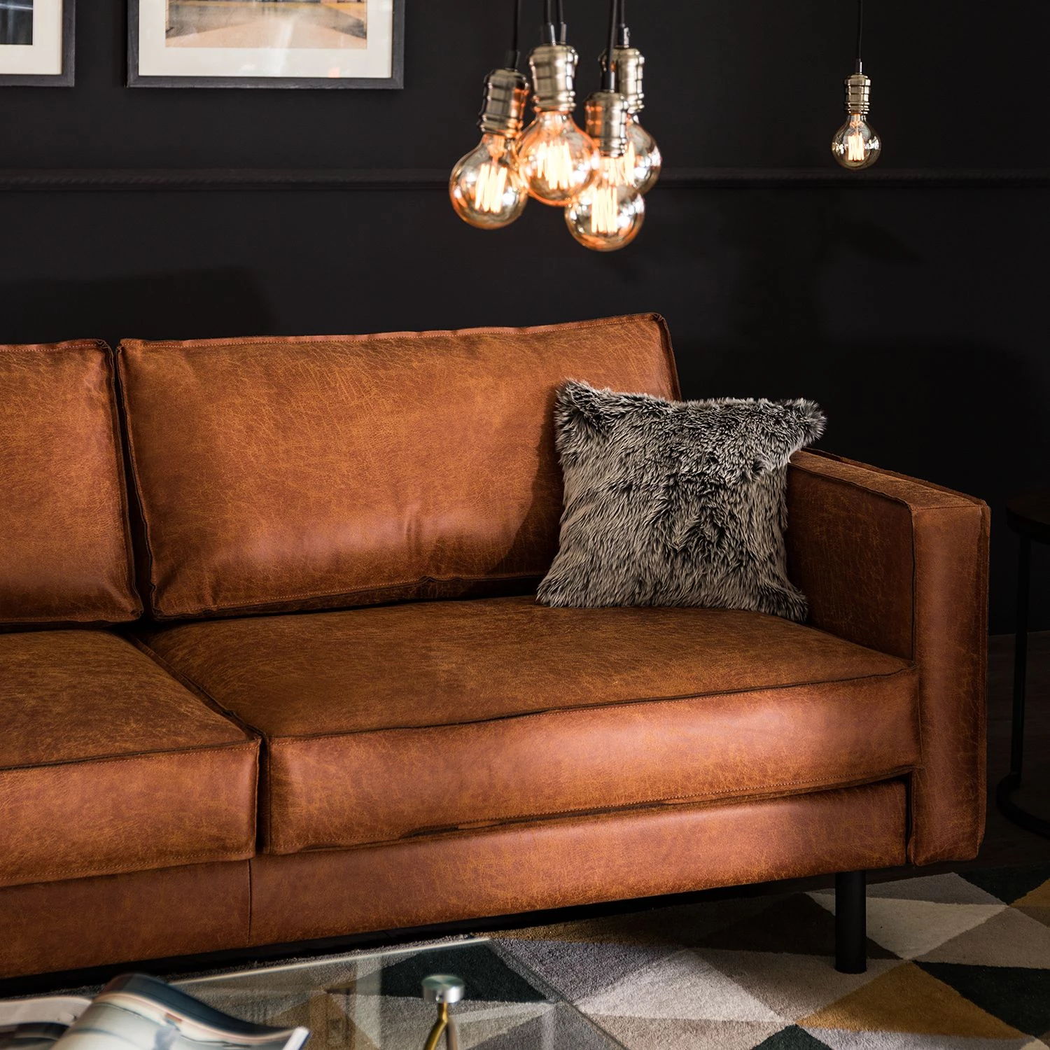 FORT DODGE est une série de meubles de style industriel et un véritable atout dans chaque salon. Le rembourrage en mousse de haute qualité assure une sensation d’assise confortable. Le matériau est composé d’une couche supérieure en microfibre et d’une couche de base en cuir véritable. Des pieds en métal laqué noir complètent l’ensemble.