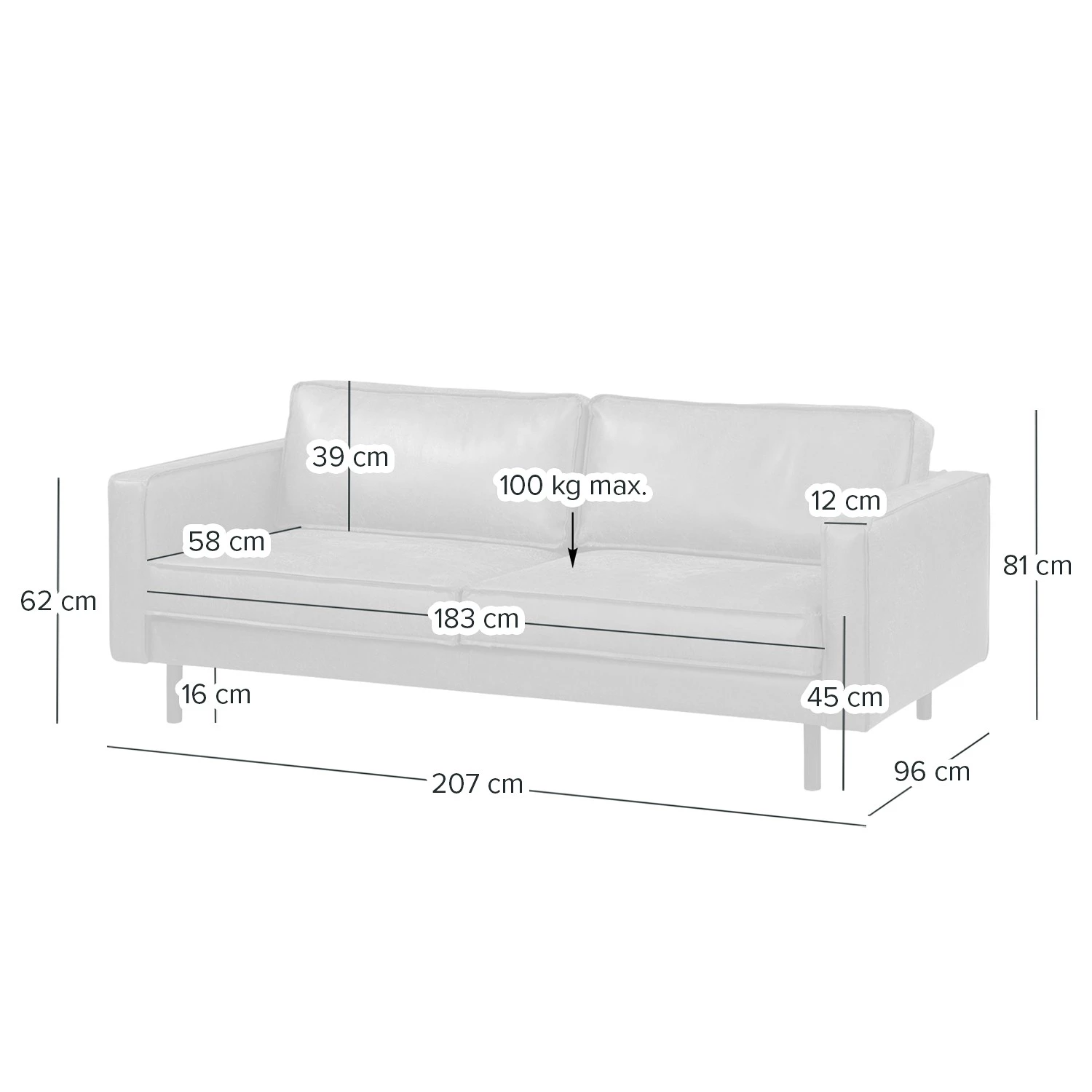 - Charge maximale : 100 kg