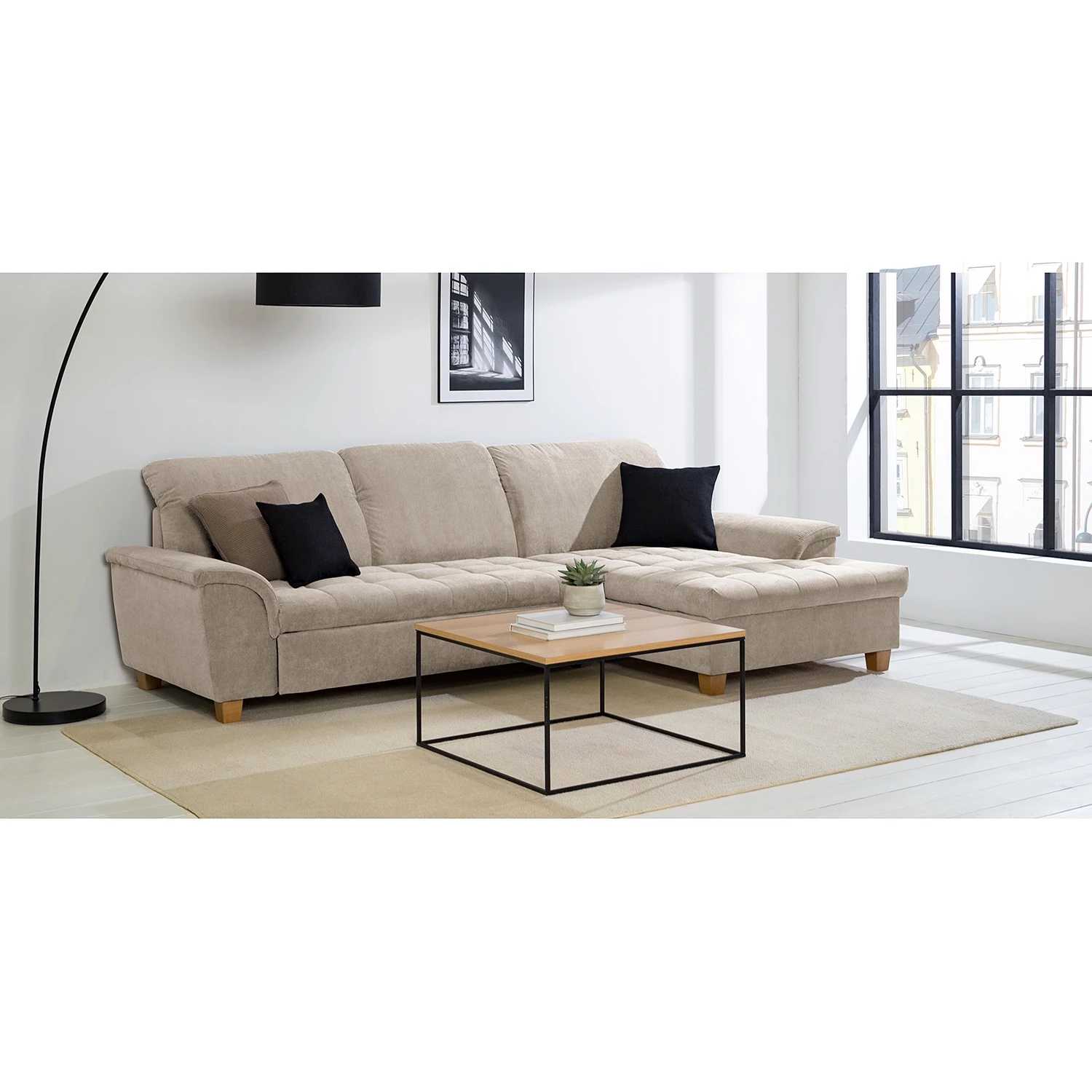 - Contenu de la livraison : canapé d’angle, sans décoration