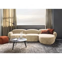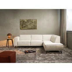 Studio Copenhagen Canapé d’angle Harlev – Cuir véritable – Méridienne courte à droite (vue de face)