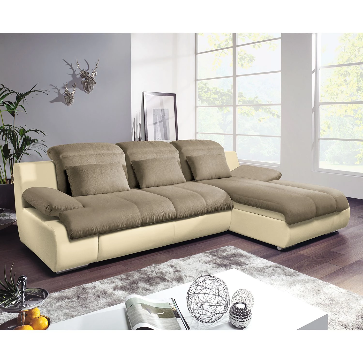 - Contenu de la livraison : canapé d’angle avec 3 coussins de soutien lombaire, sans décoration