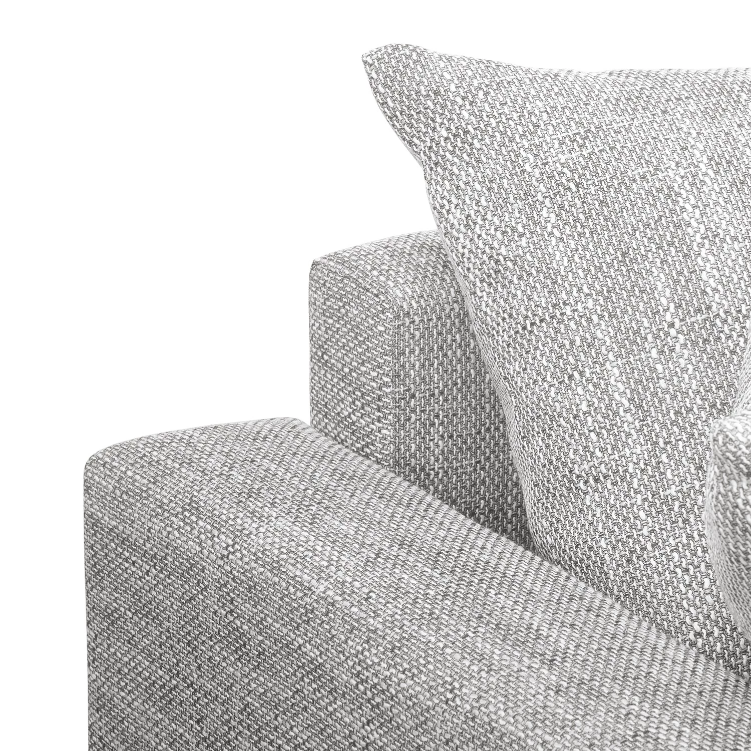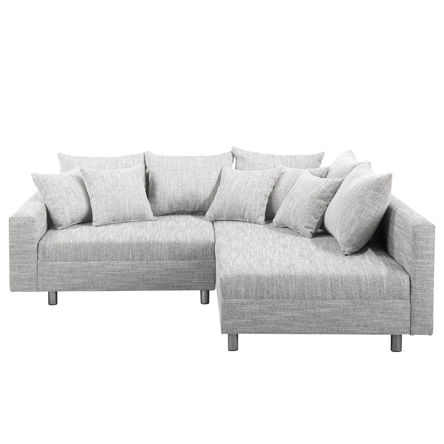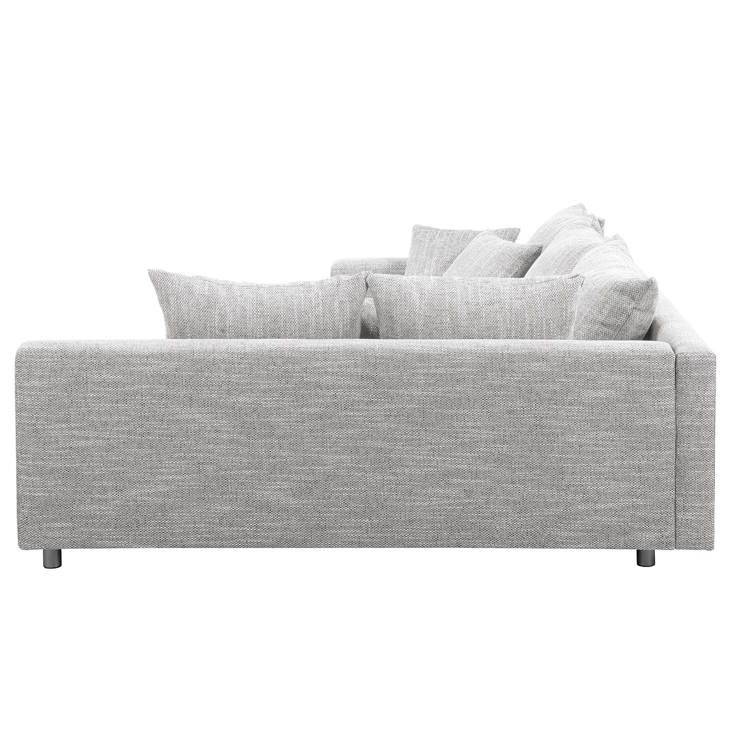 - Contenu de la livraison : canapé d’angle avec pouf repose-pieds et 10 coussins, sans décoration