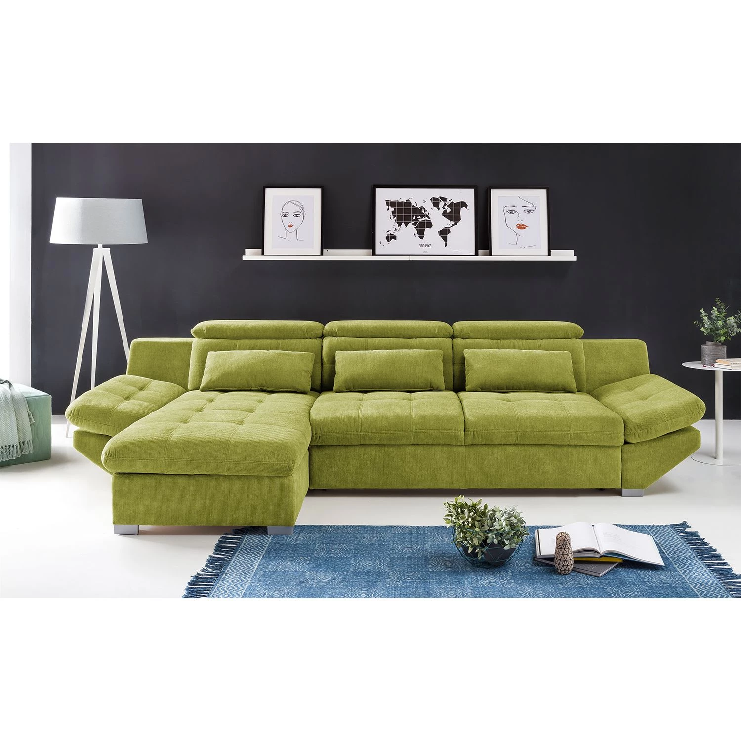 - Canapé d’angle avec 5 coussins lombaires, sans décoration