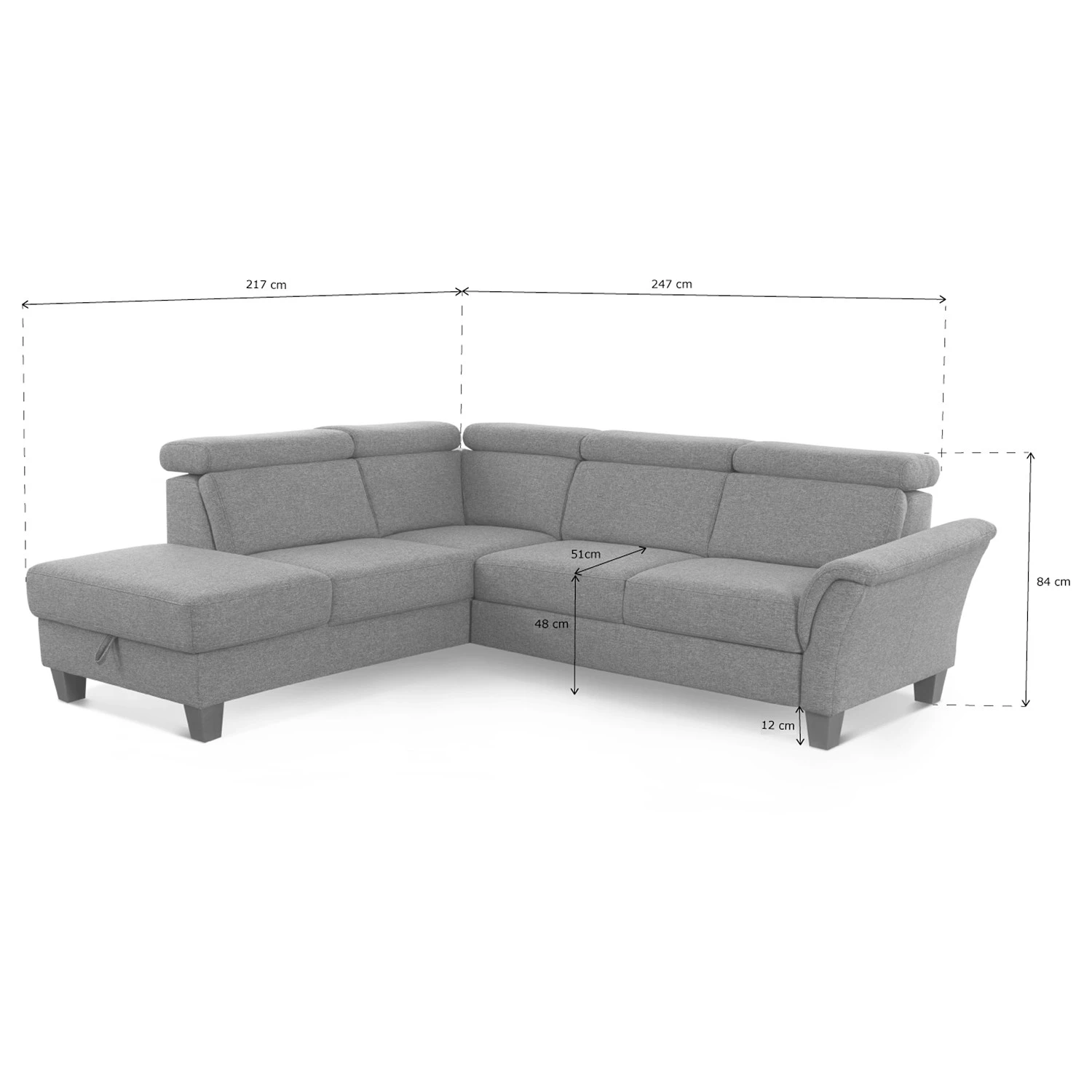 - Profondeur de la méridienne longue : 217 cm