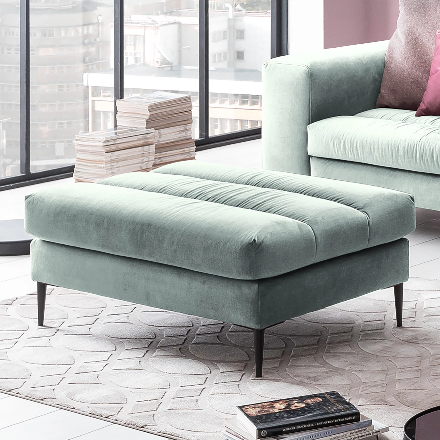 - Largeur du pouf repose-pieds : 100 cm