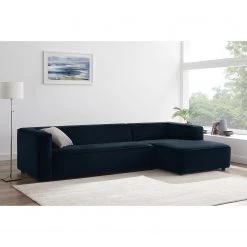 Jack & Alice Canapé d’angle Daru III – Velours – Bleu marine