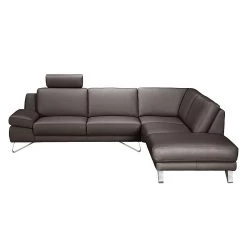 Loftscape Canapé d’angle Silvano – Cuir synthétique mocca – Méridienne à droite (vue de face) – 1 appui-tête