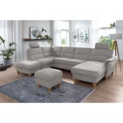 Mørteens Canapé d’angle Jamsa – Velours – Gris – Méridienne longue à gauche (vue de face)