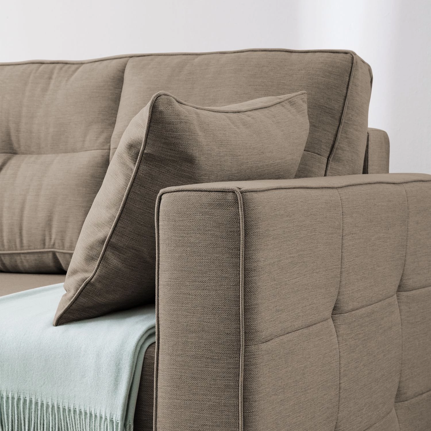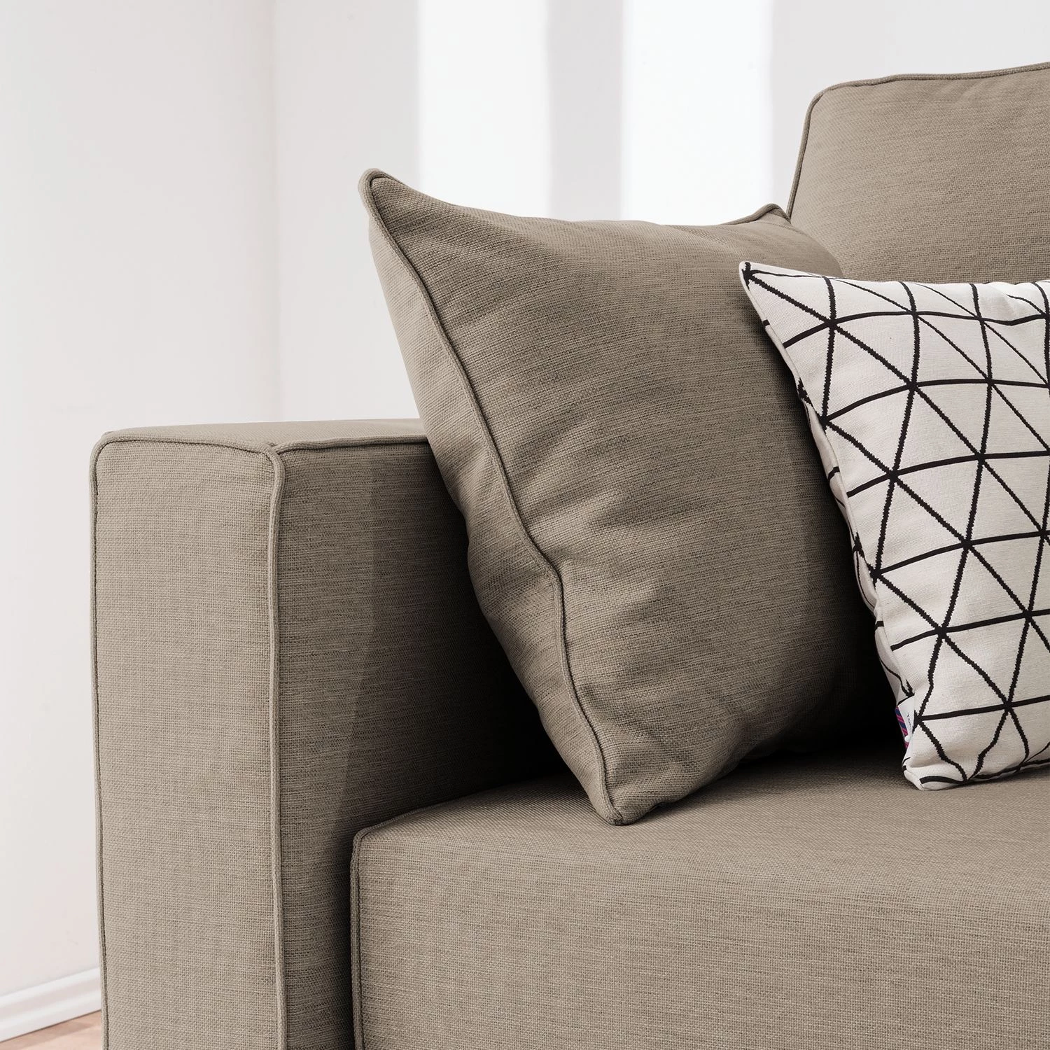 - Contenu de la livraison : Canapé avec 2 coussins de dossiers et 2 coussins d’appoint, sans décoration